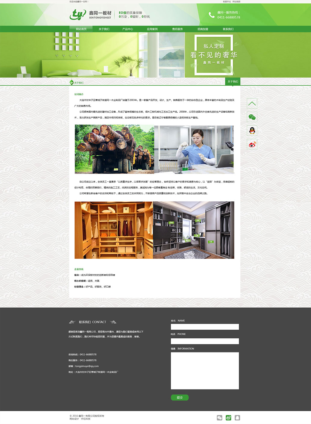 公司始建于2003年,坐落在美麗的海濱城市—大連。公司以專業(yè)生產(chǎn)生態(tài)板、雙貼面柜體板、細(xì)木工板聞名于遼寧省,是遼寧省最具有實力的專業(yè)板材廠家之一,在省內(nèi)享有較高的聲譽。