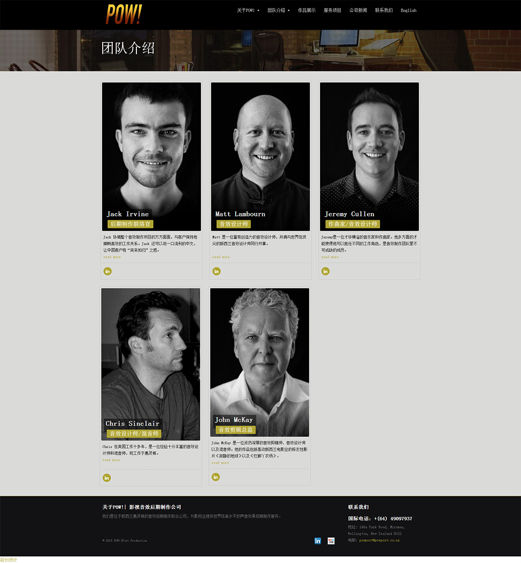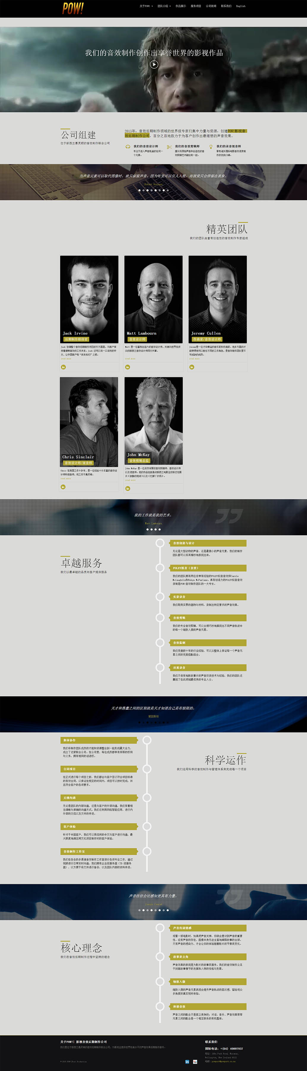2015年,音效后期制作領(lǐng)域的世界級專家們集中力量與資源,創(chuàng)建POW!影視音效后期制作公司,百分之百地致力于為客戶創(chuàng)作出最理想的聲音效果。我們將制作團隊成員的才能和資源整合到