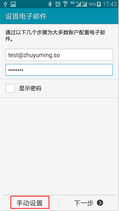 2.填寫郵箱的 email 地址及郵箱密碼,建議單擊 手動配置 :
