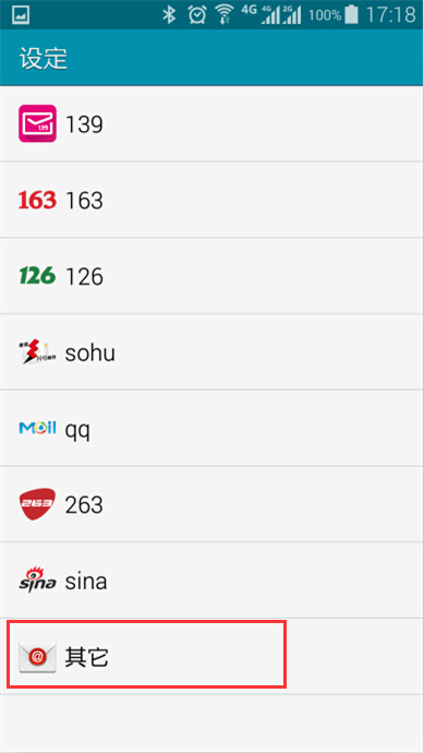 1.打開安卓手機(jī)的應(yīng)用程序,選擇 郵件 ,進(jìn)入至郵箱設(shè)置頁面。在選擇郵件提供商處單擊 其他 ,如圖: