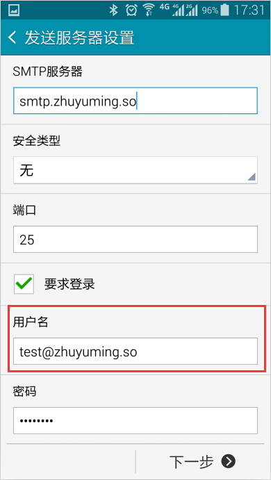 以下我們將使用test@zhuyuming.so 為測試案例,請您操作時(shí)更換成您自己的郵箱賬號和信息。