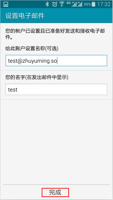 4.填寫姓名后單擊 結(jié)束設(shè)置 ,完成整個安卓手機(jī)客戶端設(shè)置。