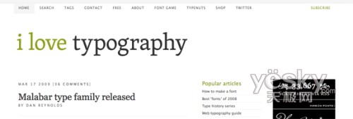 一個(gè)用來展示排版的網(wǎng)站如果在它自己的頁(yè)首就為我們展示了一個(gè)極好的排版效果,那讓人覺得多驚奇啊!我喜歡他們所用的字體,也喜歡他們良好的青色和深灰色搭配。