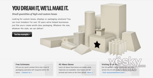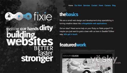 哇噻,我真的非常喜歡這個(gè)網(wǎng)站上使用的排版和顏色。注意看他們標(biāo)語(yǔ)的大小和筆畫。頁(yè)面上灑水效果和少量藍(lán)色的使用,都讓我非常欣賞。