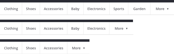 這意味著更多項中包含的子相會隨著屏幕寬度的減小而變多,沒有足夠的空間項目就會折疊起來。尤其當寬度處于中間時,這個解決方案的靈活性提供了一個更好的用戶體驗。