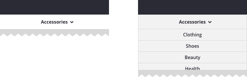 下拉菜單有一個雙重角色:首先,它作為一個頁面標題,雖然選項隱藏其下,向下箭頭表明有可能迅速切換到相似的部分。其二,除了切換同級選項,切換到下級項目也是能被用戶接受的。