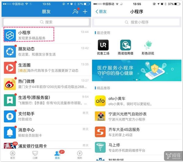 用戶打開(kāi)支付寶的小程序有三種方式:線下掃碼、在支付寶應(yīng)用內(nèi)搜索以及通過(guò)他人分享。在支付寶的首頁(yè),搜索“小程序”,你可以進(jìn)入一個(gè)小程序的聚合頁(yè)面,其實(shí)就是小程序商店,搜索小程序的名字,也能找到對(duì)應(yīng)的小程序。使用過(guò)任何一個(gè)小程序之后,進(jìn)入支付寶首頁(yè)的“朋友”一欄,就能找到小程序的聚合頁(yè)面入口。