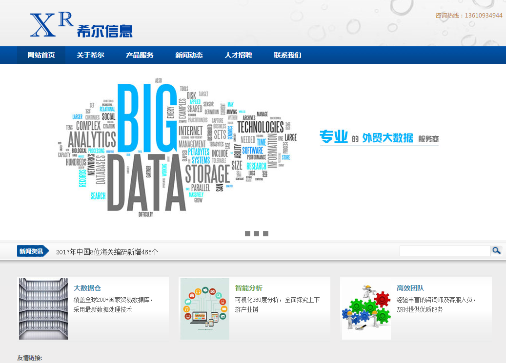 作為專注于貿(mào)易資訊的服務(wù)商,公司向進(jìn)出口企業(yè)提供準(zhǔn)確、完整的交易數(shù)據(jù),為外貿(mào)企業(yè)深入研究市場提供情報(bào)保障。公司擁有專業(yè)的數(shù)據(jù)處理團(tuán)隊(duì)和一批有豐富營銷經(jīng)驗(yàn)的情報(bào)咨詢師。目前涉及醫(yī)藥化工、電子電器、機(jī)械重工等幾十個(gè)領(lǐng)域。精誠所至金石為開,希爾愿為中國大數(shù)據(jù)事業(yè)的發(fā)展,貢獻(xiàn)全力!