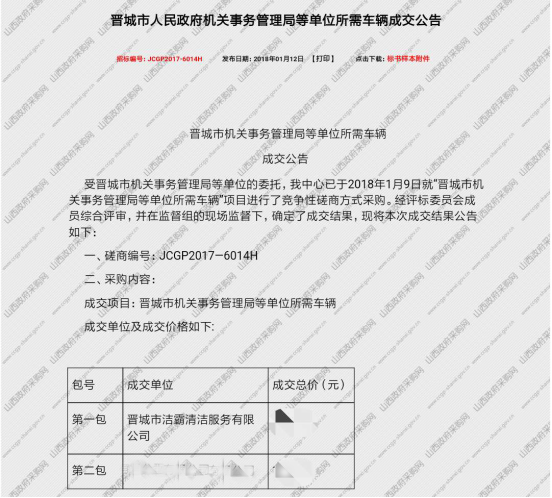 都說新年新氣象,果真是如此啊。山西潔霸在2018年的第一個月,就雙喜臨門,迎來了新年開門紅:接連在晉城市人民政府機(jī)關(guān)事務(wù)管理局等單位所需車輛項目和沁水縣綜合展示館保安、保潔服務(wù)采購項目中成功中標(biāo)。具體公告如下: