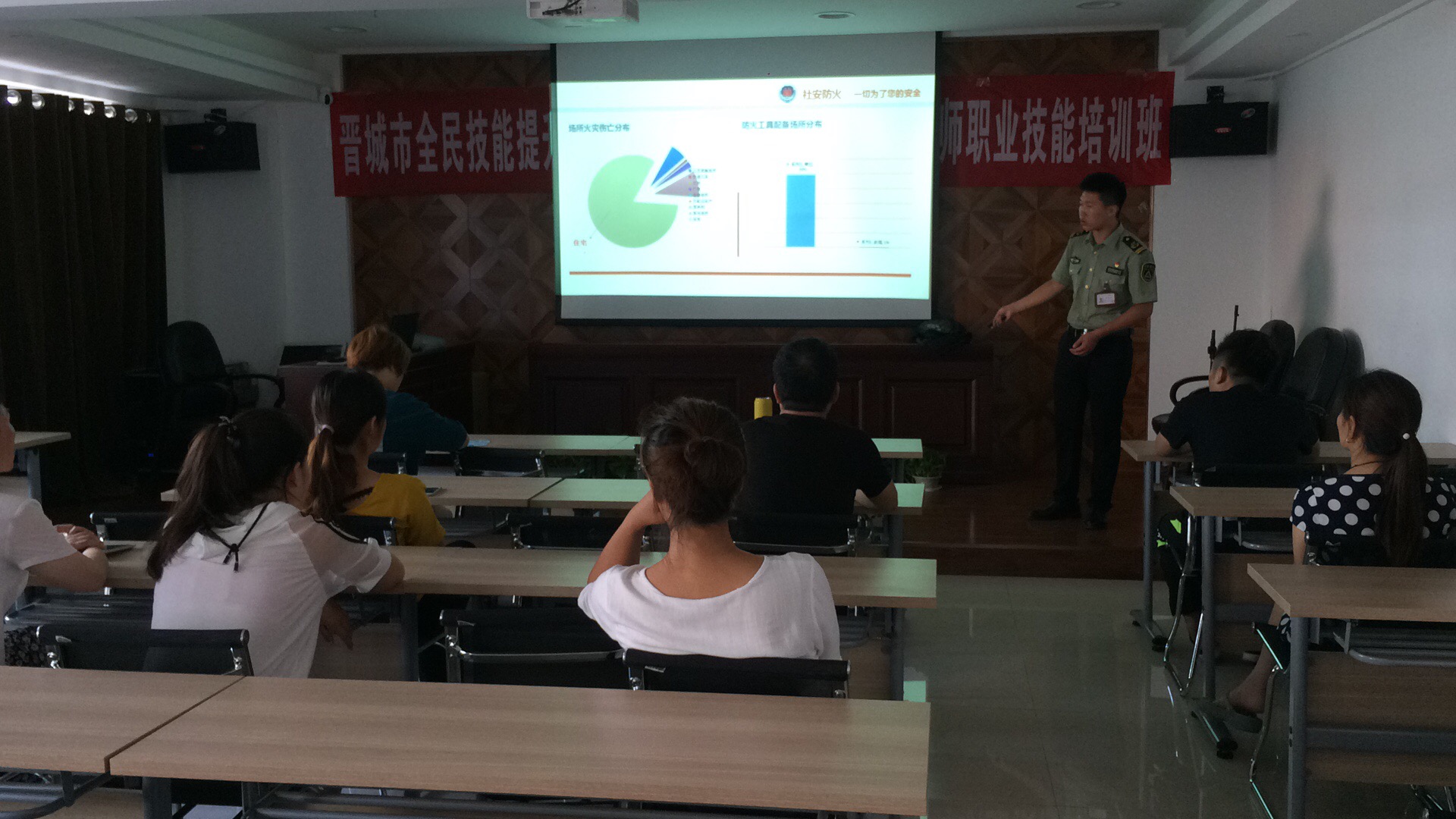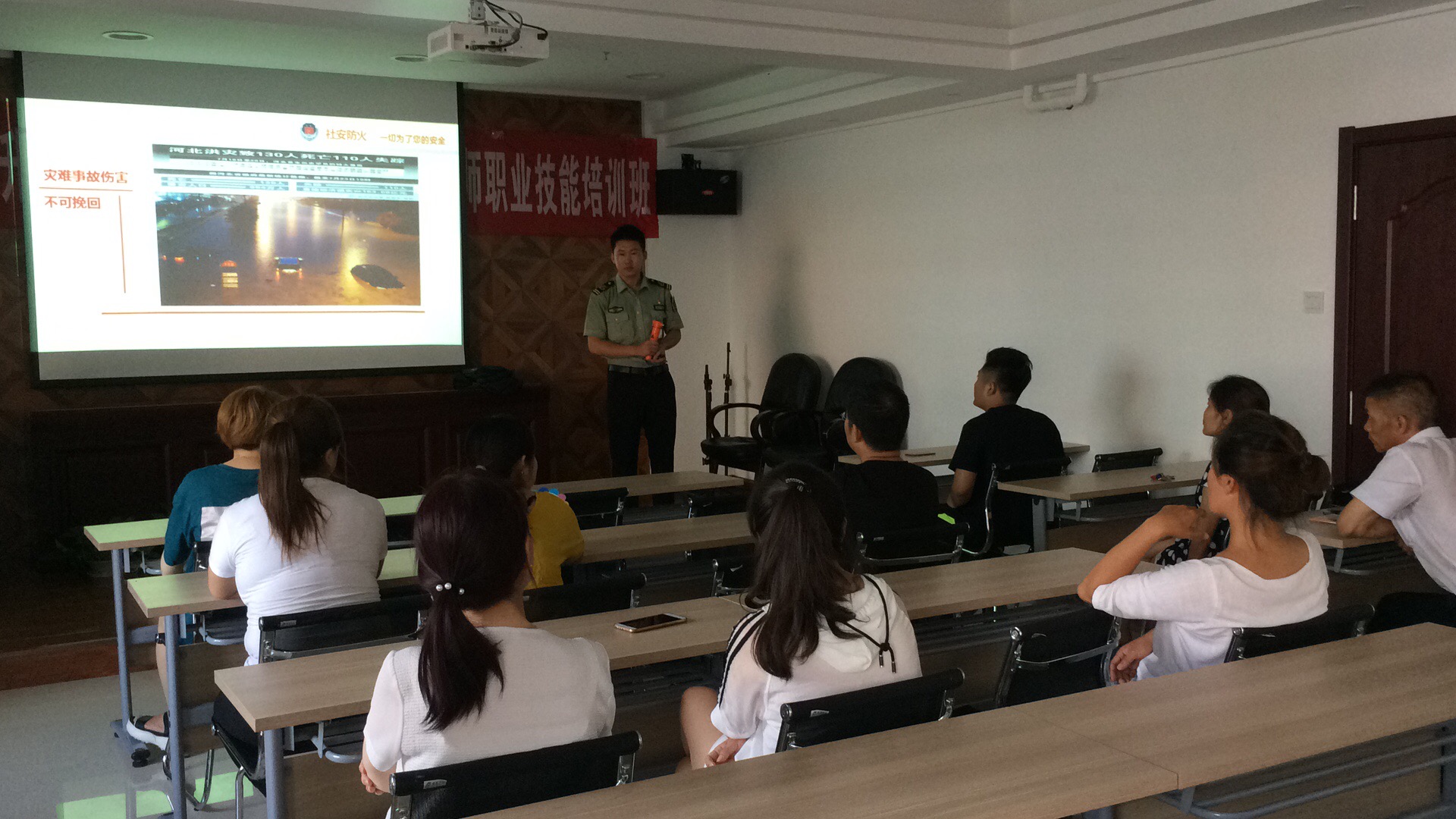 1、課堂上,教官通過強(qiáng)烈震撼的火災(zāi)圖片和視頻以及生動(dòng)的案例,讓員工詳細(xì)了解了火災(zāi)的危害。