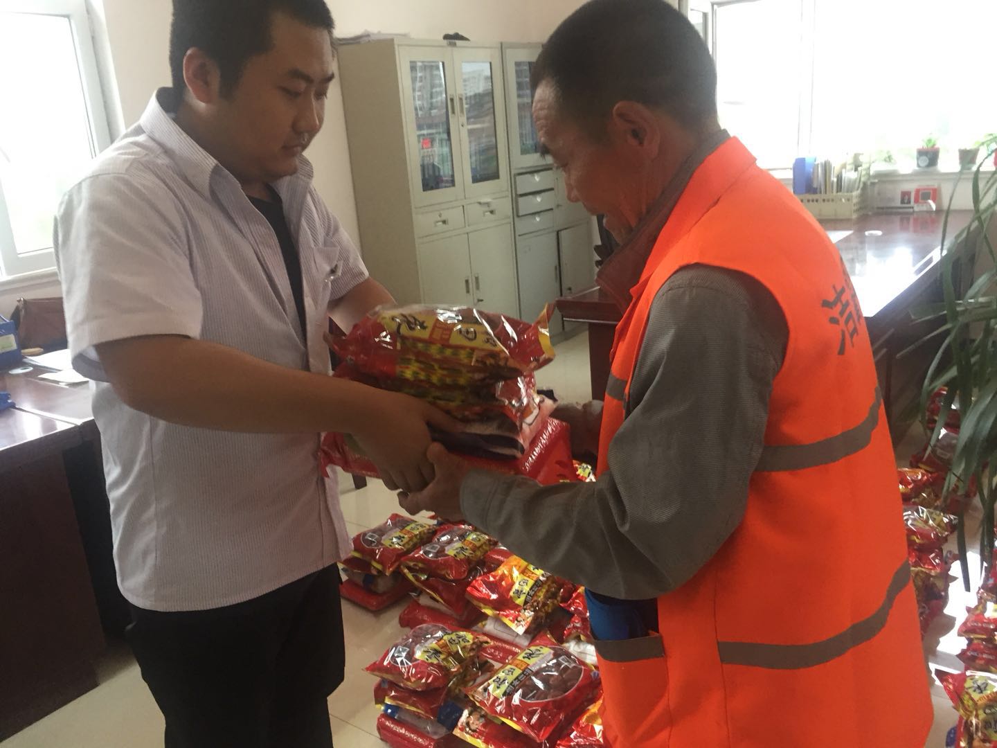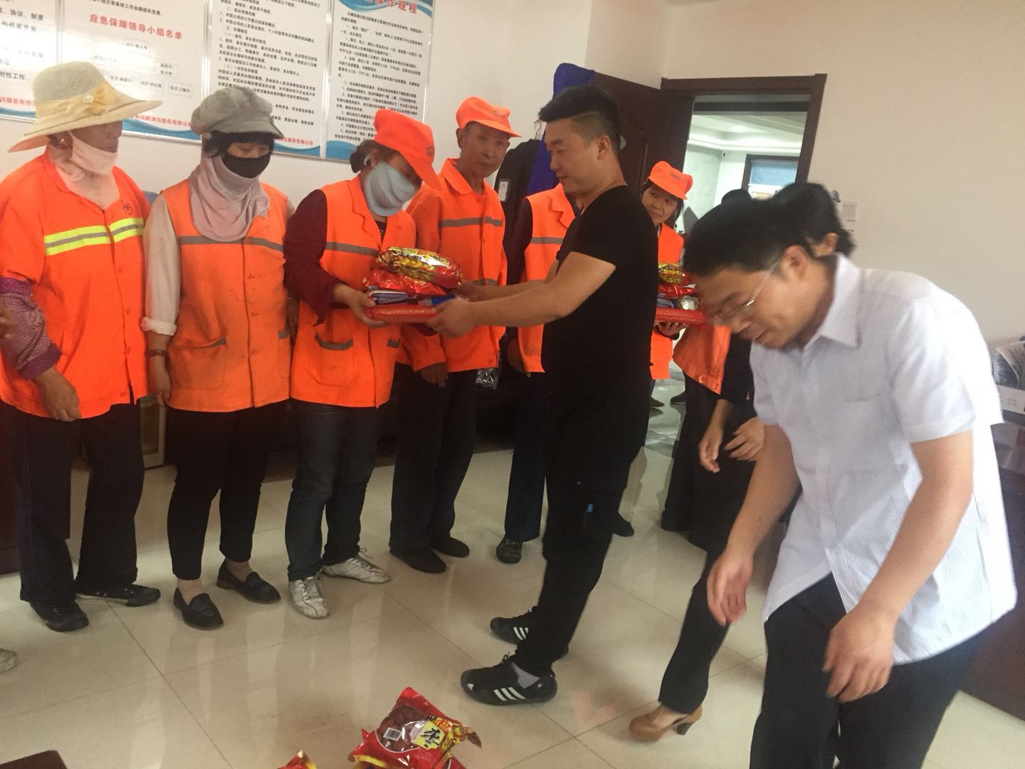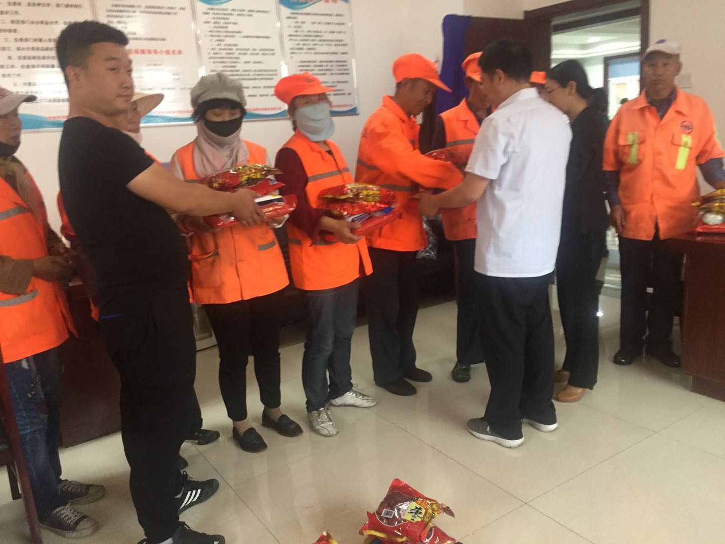 端午節(jié)來臨之際,為弘揚傳統(tǒng)文化,我公司按照傳統(tǒng)習俗為環(huán)衛(wèi)工準備了節(jié)日禮品。濃濃棕香,綿綿情長。6月5日下午,在一年一度的端午佳節(jié)來臨之際,一袋袋香香的糯米、大大的紅棗、白糖、冰糖飽含著公司關(guān)愛和祝福的端陽節(jié)福利由公司領(lǐng)導親自發(fā)放到為美化城區(qū)大街小巷作出默默奉獻的公司環(huán)衛(wèi)工人手中。