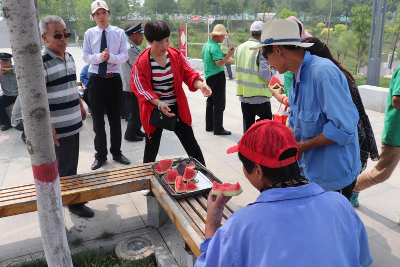 在公園的小廣場,慰問小組工作人員為員工切好西瓜,把西瓜、面包、白糖依次遞到員工手中,員工們親切的笑聲與慰問人員的互動形成了親情、溫情的交織,一片生動和諧的場面。雖然是一個個面包,一塊塊西瓜、一袋袋白糖,卻使員工永遠(yuǎn)記住了這美好時光。崔主席也親自為員工切起了西瓜,員工們品嘗著西瓜和面包,感受著領(lǐng)導(dǎo)的關(guān)懷,決心做好自己的本職工作,為晉城創(chuàng)建全國文明城市做出積極貢獻。