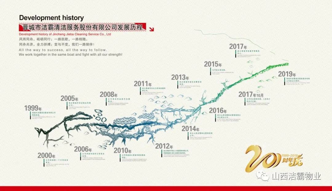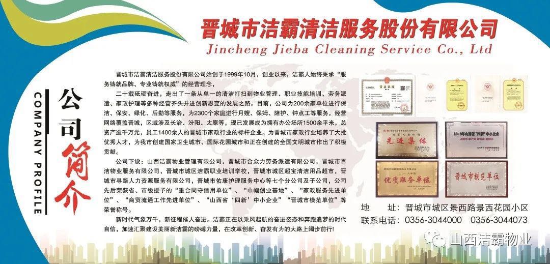 20年砥礪奮進,從一個租賃兩間辦公室名不見經傳的小公司,成長為擁有擁有辦公場所1500余平米,總資產逾千萬元,員工1500余人的晉城市家政行業(yè)的標桿企業(yè),潔霸完成了精彩跨越,“做清潔行業(yè)的霸主”的發(fā)展定位從未改變。