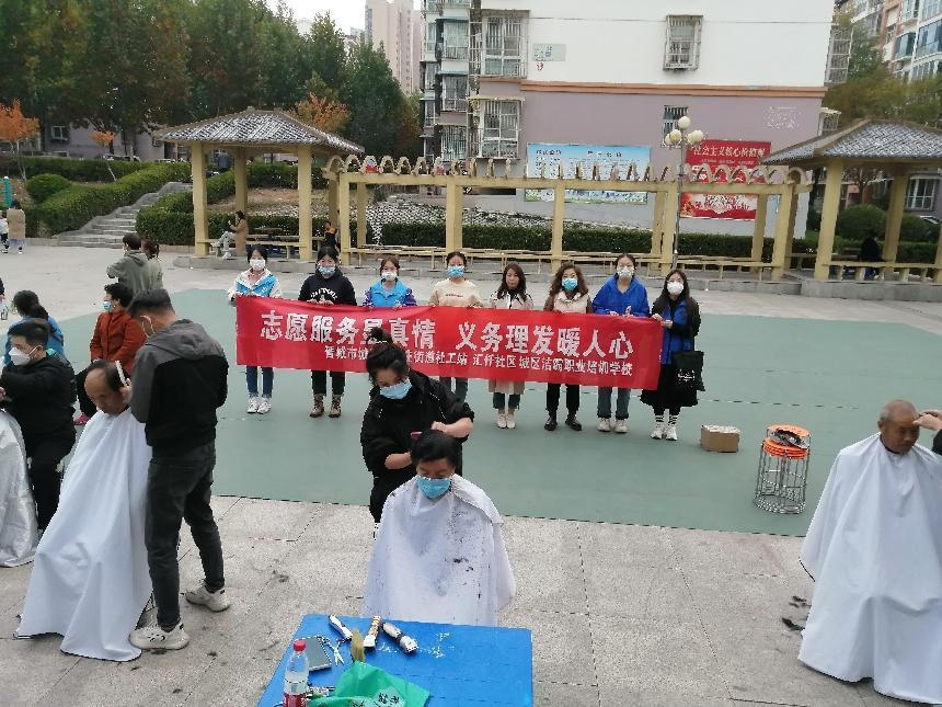 為了更好地服務居民,提升轄區(qū)內(nèi)居民的幸福感,2022年10月20日,潔霸職業(yè)培訓學校聯(lián)合城區(qū)鐘家莊街道社工站、匯仟小區(qū)在匯仟B區(qū)開展“志愿服務是真情,義務理發(fā)暖人心”公益活動。