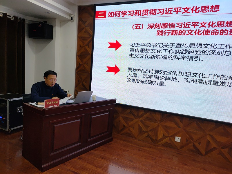 郝天順從習(xí)近平總書記對(duì)宣傳思想文化工作作出的重要指示談起,從“如何認(rèn)識(shí)和理解習(xí)近平文化思想 ”“如何學(xué)習(xí)和貫徹習(xí)近平文化思想”“全面貫徹落實(shí)習(xí)近平文化思想,切實(shí)做好非公企業(yè)文化建設(shè)”三個(gè)方面進(jìn)行了深刻闡述,指出習(xí)近平文化思想既有文化理論觀點(diǎn)上的創(chuàng)新和突破,又有文化工作布局上的部署要求,明體達(dá)用、體用貫通,明確了新時(shí)代文化建設(shè)的路線圖和任務(wù)書,在我國社會(huì)主義文化建設(shè)中展現(xiàn)出了強(qiáng)大偉力,為做好新時(shí)代新征程宣傳思想文化工作、擔(dān)負(fù)起新的文化使命提供了強(qiáng)大思想武器和科學(xué)行動(dòng)指南,并結(jié)合非公企業(yè)實(shí)際,要求要緊緊圍繞學(xué)習(xí)貫徹習(xí)近平文化思想,圍繞貫徹黨的二十大關(guān)于文化建設(shè)的戰(zhàn)略部署,強(qiáng)化黨建引領(lǐng)作用,帶動(dòng)企業(yè)文化發(fā)展,將文化建設(shè)作為企業(yè)戰(zhàn)略,不斷創(chuàng)新文化理念,將企業(yè)文化實(shí)體化、制度化,促進(jìn)企業(yè)文化升華,推動(dòng)各項(xiàng)工作落地見效。